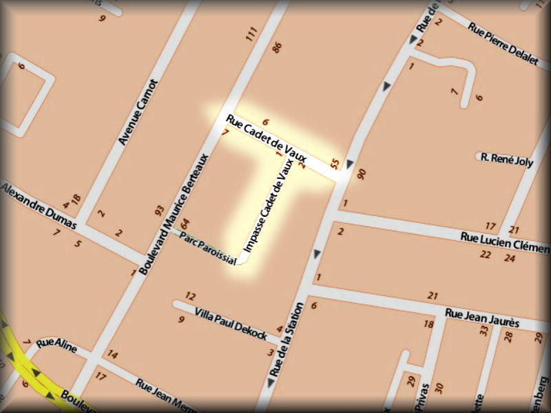 Quartier du : Vieux Marché Statut : Voie communale. Origine du nom : Fils de Claude Cadet, chirurgien à l'Hôtel Dieu de Paris et petit neveu de Vallot, premier médecin de Louis XIV. Afin de se distinguer les uns des autres, chacun des sept frères ajouta à leur nom le lieu où ils avaient été mis en nourrice. Antoine Alexis Cadet de Vaux avait deux ans à la mort de son père, il sera chimiste et pharmacien en chef à l'hôpital du Val de Grace, puis professeur à l'école vétérinaire d'Alfort. Il obtient le titre de censeur royal pour la chimie. |