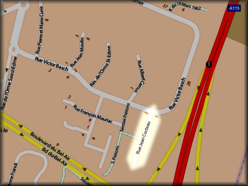 Statut : Voie privée impasse. Longueur : 110 m. Largeur : 5 m. Début : Rue Victor Basch. Période de création : Décision du Conseil Municipal du 15 juin 1984.