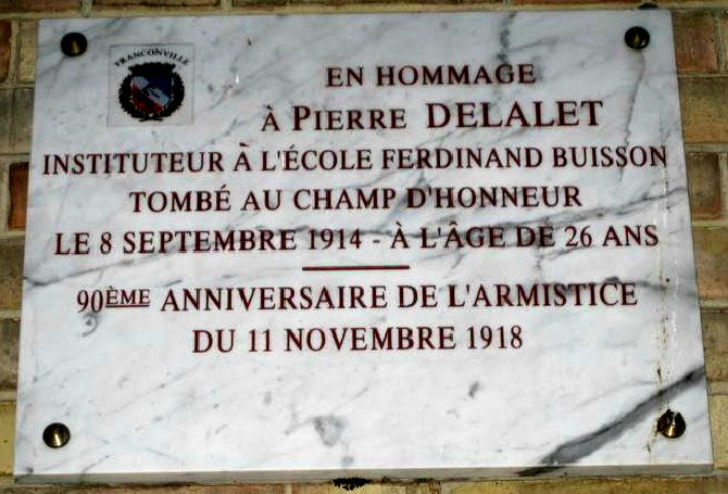 Pierre Delalet, né en 1888, nommé sous lieutenant puis lieutenant au 1er Bataillon de la 2ème compagnie du 66 ème RI de Tours, mort au champ d'honneur à l'âge de 26 ans, le 8 septembre 1914 à Oeuvry au sud de La Fère Champenoise.