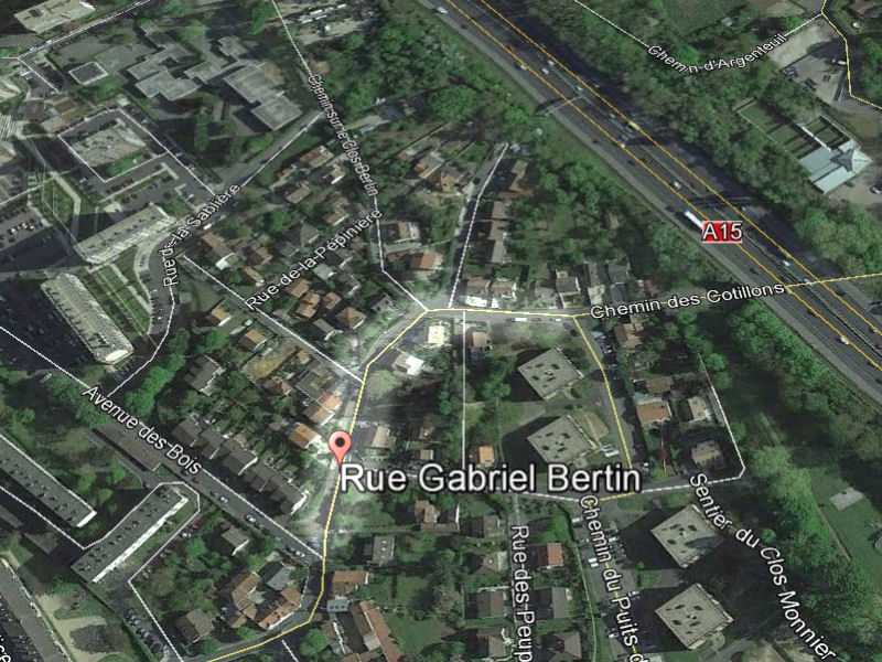 Noms de baptêmes successifs : Sur le plan de 1732, figure sous le nom de rue de Buchet et ruelle de la Pissotte, ainsi nommée car l'eau y dévalait de la côte, (H. Mataigne). Ancienne rue d’Argenteuil Origine du nom : Gabriel Bertin, né à Franconville le 13 février 1853, marié le 18 juin 1874 et décédé le 13 novembre 1914. Était conseiller municipal sous Toussaint Lucas en 1888.