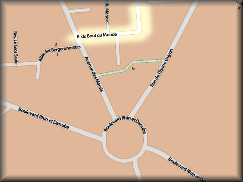 Statut : Voie privée impasse.Longueur : 125 m.Largeur : 6 m.Début : Avenue des Marais.Période de création :Sur le plan d’urbanisme de l’aménageur, les rues sont dénommées dès 1964.