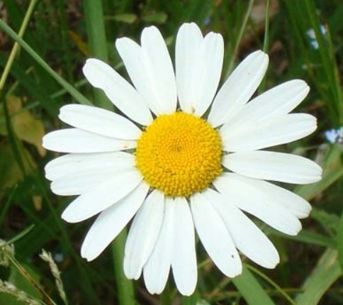Origine du nom :Plante herbacée vivace en touffe, à tige érigée, à fleurs blanches autour d'un centre jaune. Elle se rencontre dans les prés, accotements, bois clairs. C'est une plante très commune dans toute l'Europe.