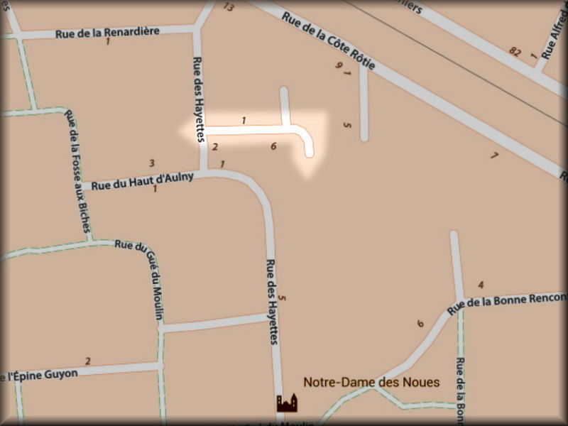 Statut : Voie en impasse.Longueur : 70 m.Largeur : 5 m.Début : Rue des Hayettes.Période de création : Sur le plan d'urbanisme de l'aménageur, les rues sont dénommées dès 1964.