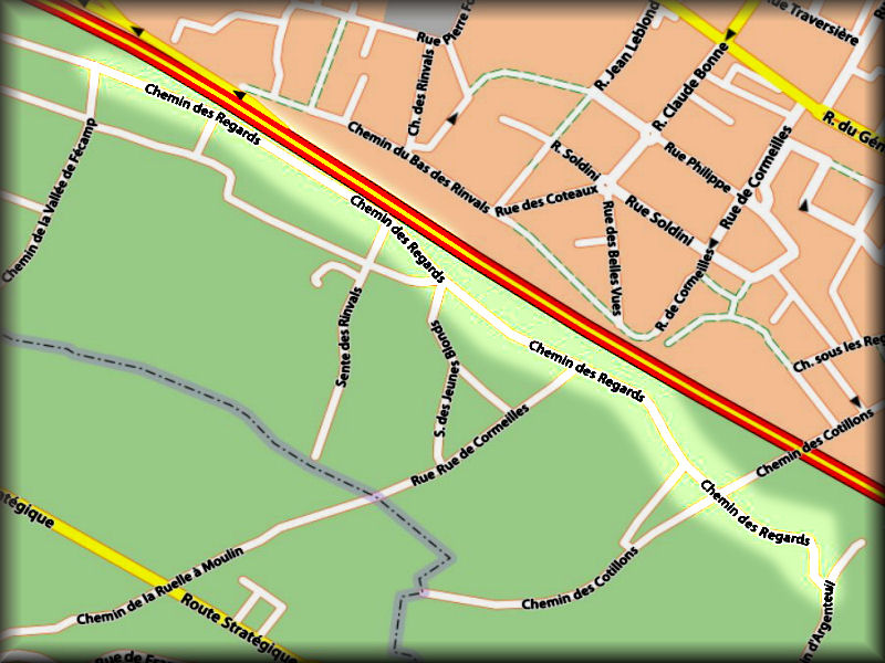 Origine du nom : Lieu dit. Ce chemin situé sur les hauteurs de Franconville offre une vue générale sur Franconville, d'où sans doute ce nom.