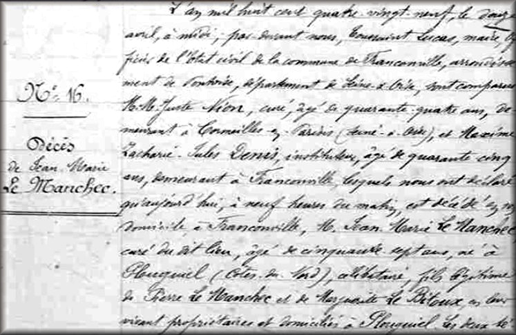 Jean Marie LE MANCHEC 1879/1889 Né à Plouguiel Cotes du Nord |