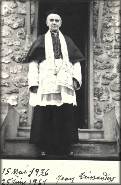 Jean TESSANDIER 15 mai 1936/25 juin 1961 Né en Lozère le 28 mai 1881, il fut ordonné à Mende le 2 juillet 1905. Il vint en 1911 servir au diocèse de Versailles. D’abord vicaire à Rueil de l’abbé Faivre, il fut ensuite curé de Port Marly en 1920, Montlhéry en 1928, Franconville en 1936, Chanoine en 1938, vice doyen en 1943. Il se retira en Lozère en 1961 après 25 ans à Franconville, il décède le 18 février 1969. |