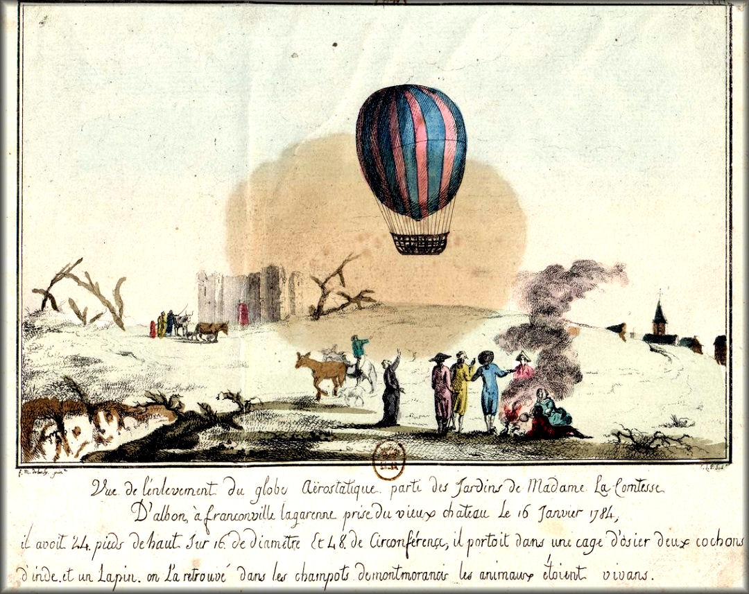 16 janvier 1784, sur le sommet de la colline, il fait partir un globe de 16 pieds de diamètre et 24 de hauteur, s’élevant vers la forêt de Montmorency avec comme passagers : un lapin et deux cochons d’Inde. Il fut retrouvé à proximité du château de la Chasse.