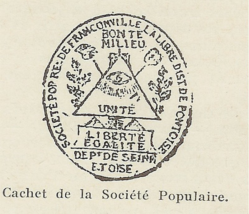 La Société était composée en grande partie d’étrangers à la ville, avec par exemple des exaltés qui criaient «Fouettez, fouettez les aristocrates». La municipalité de Franconville avait pour maire Jean-Baptiste Guichard, homme de loi, qui ne s’en laissa pas imposer et notait «la société populaire pervertit l’esprit public par la distribution gratuite de journaux, de soulever les citoyens contre les autorités constituées». Le péril était devenu si imminent, que les citoyens de la commune propriétaires, s’étaient présentés à l’affiliation de cette société, pour empêcher et arrêter le mal qu’elle se proposait de faire. Parmi ces nouveaux affiliés, nous trouvons le citoyen Bouju, notaire et officier municipal, ainsi que Cadet de Vaux qui n’épousaient aucune idée de cette société et qui réprouvaient et condamnaient tous les excès. Ce dernier, servit de frein à la Société Populaire, son ami Guichard, maire de Franconville lui ayant conseillé son affiliation.