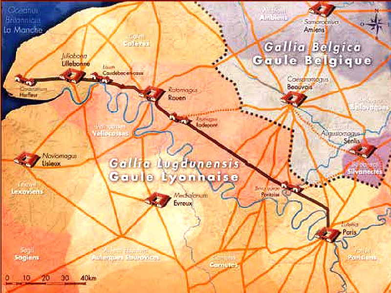 Après la Gaulle conquise, pour consolider la conquête de son oncle, l’empereur Auguste fit construire un solide réseau routier couvrant toute la Gaule et comprenant cette chaussée que l’on appelle du nom de Jules César. En effet elle fut construite par Agrippa, gendre d’Auguste, Agrippa étant mort en l’an 13 après Jésus Christ, c’est dans les années 11-12 que fut construite cette chaussée. Elle partait de Lutèce et se dirigeait en droite ligne vers Saint Denis, et bifurquant à gauche, contournant une boucle de la Seine pour aller rejoindre le vieux chemin gaulois vers Ermont, avant de continuer sa route vers Pontoise.