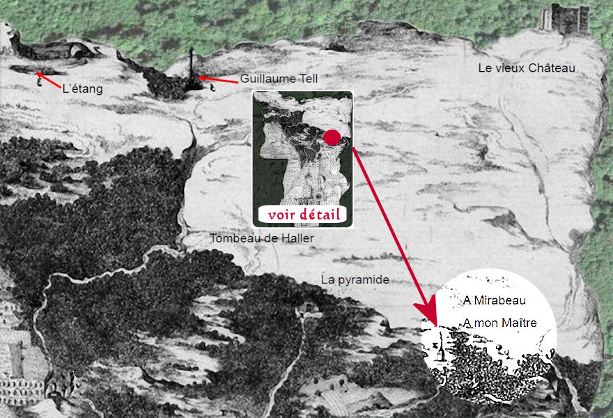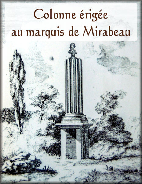 Alb Mirabeau ZLe monument se composait d'une colonne tronquée au fût cannelé, supportant un buste du marquis et reposant sur un piédestal carré sur lequel était inscrit simplement "A mon maître".